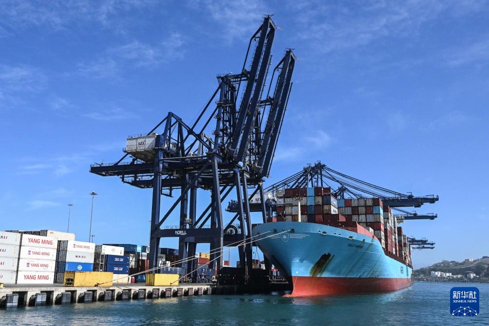 11月18日,智利圣安东尼奥港,工人正在进行装卸。新华社发(豪尔赫·维勒加斯 摄)
