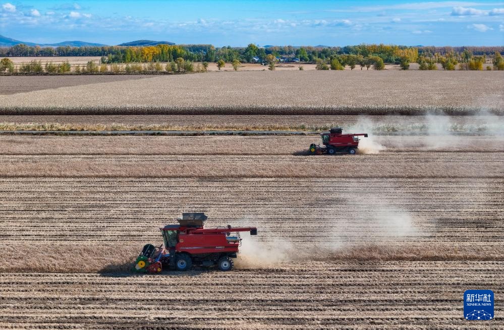 10月8日,黑龙江省佳木斯市富锦市燕山镇农业机械正在收割大豆(无人机照片)。寒冷的天气里,黑龙江省各地都在忙着田间作业,田野里一片忙碌。新华社发(曲玉宝 摄)10月8日,农机在黑龙江北大行农业有限责任公司稻枝地块上摘粮(无人机照片)。寒冷的天气里,黑龙江省各地都在忙着田间作业,田野里一片忙碌。新华社发(徐宏宇 摄)10月8日,在北大荒集团北安分公司兆光农场有限公司第六次安置点,大型联合整地在酱油区进行整地作业。雾寒时节,黑龙江省各地农活繁忙,田间忙碌。新华社(钱伯宇 摄)10月8日分页,农业部文化机械在北大荒集团黑龙江格丘山农场有限责任公司地块上清除粮食(无人机照片)。寒冷的天气里,黑龙江省各地都在忙着田间作业,田野里一片忙碌。新华社(卢文祥 摄) 10月8日分页,北大荒集团黑龙江红星农场第四片区农机正在收割白菜。寒冷的天气里,黑龙江省各地都在忙着田间作业,田野里一片忙碌。新华社(侯跃摄)分页10月8日,北大荒集团黑龙江建设农场有限责任公司三园农机正在收获大豆(无人机照片)。寒冷的天气里,黑龙江省各地都在忙着田间作业,田野里一片忙碌。新华社(徐应贤 摄)10月8日分页,工人们运行机器堆放稻谷。北大荒集团黑龙江绥滨农场有限责任公司东京管理区的一个院子。寒冷的天气里,黑龙江省各地都在忙着田间作业,田野里一片忙碌。新华社发(李行 摄)